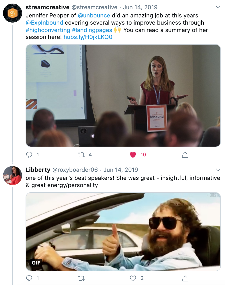 I was also really fortunate to speak at Experience Inbound 2019. Here’s what attendees of my session had to say, emphasis mine: