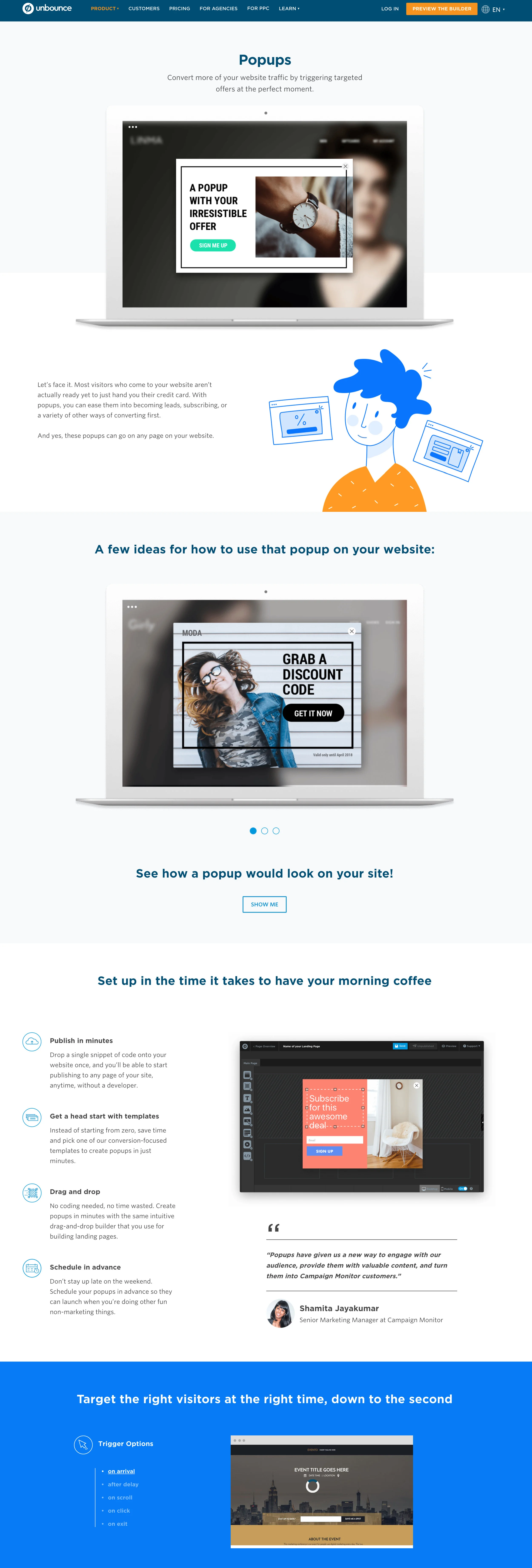 Unbounce’s new site was worked on by dozens of people, but I’ll shout out the core contributors here including: Ceci Martinez, James Thomson, Hayley Mullen, Luke Bailey, Leslie Ty, Megan Sakakibara, Sam Shen, Viv, Robin, and Martin of Dos Lados, and Colin Loughran.